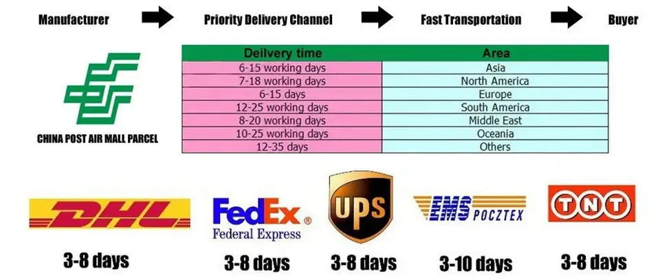 5. Order processing time: between 6-10 days. (Except for urgent orders, excluding shipping time), shipping time depends on your choice, Aliexpress standard shipping 15-25 days, DHL 4-7 days to arrive,. If you need an expedited order, please contact us before placing an order. thanks.