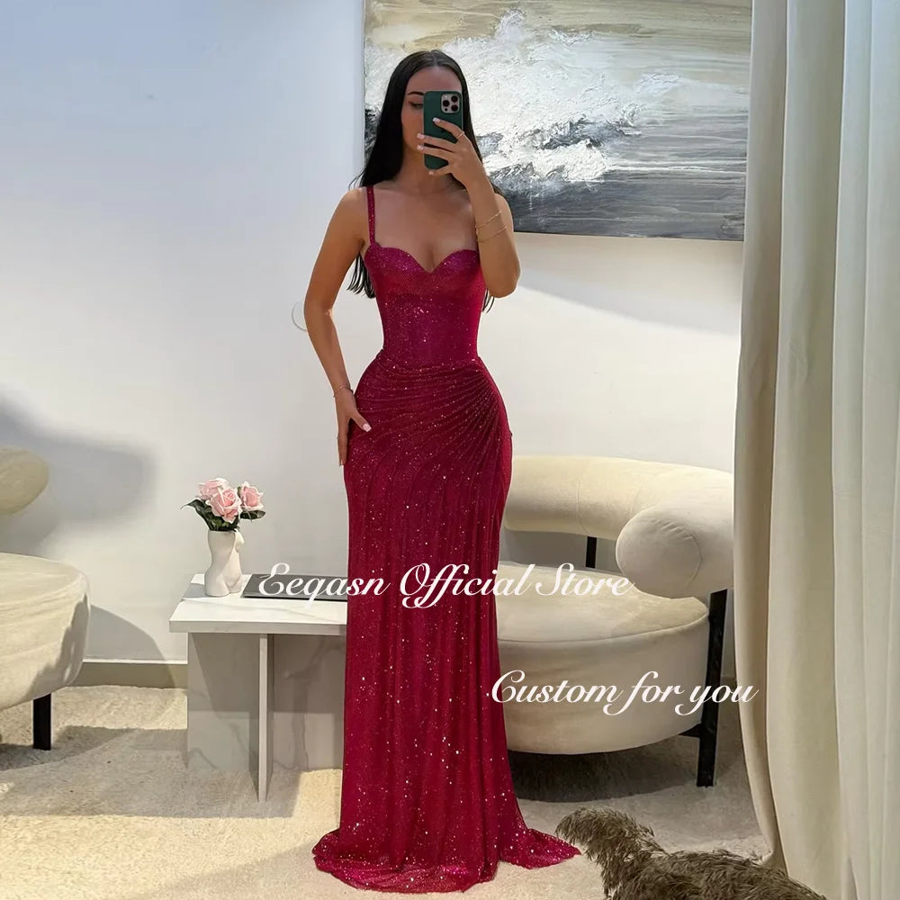 Glitter Evening Dresses Women Strapless Mermaid Elegant Formal Occasion Dress Split Robes De Soirée 2025 Long Prom Customized