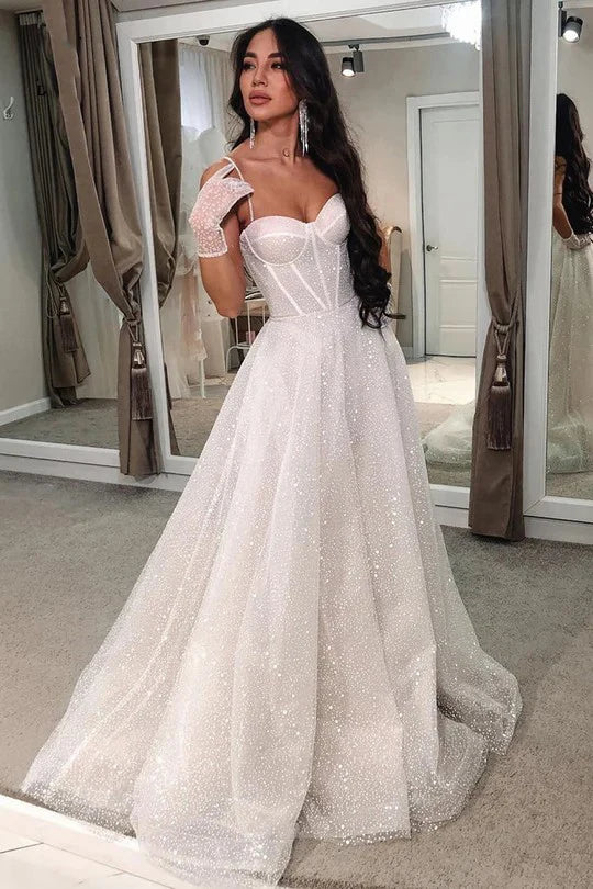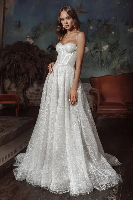 Beach Glitter Wedding Dress V Neck Party Bridal Dresses Vestido De Noiva Gelinlik Arabic mariee Shiny Bridal Gowns