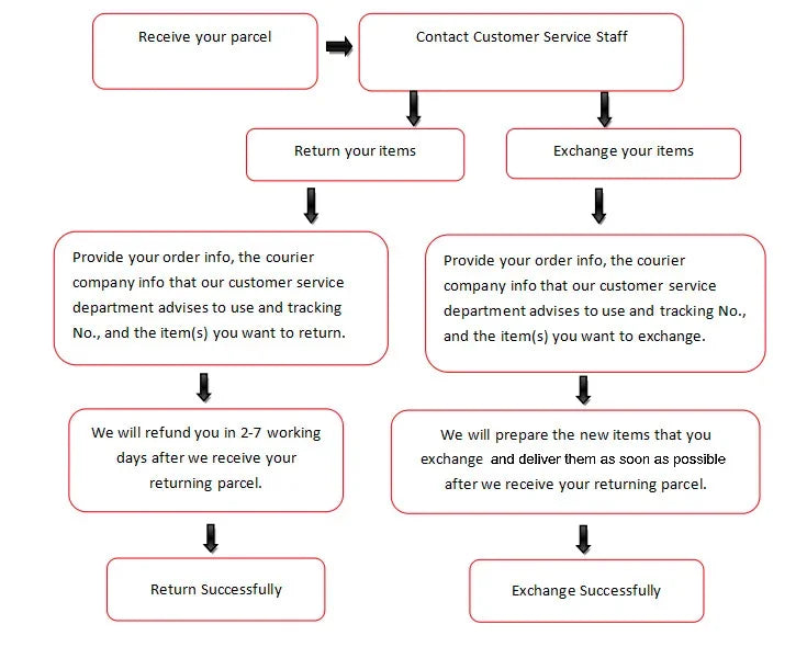 5. After we received your returning parcel info and tracking No,we will refund your money to your account within 2-7working days