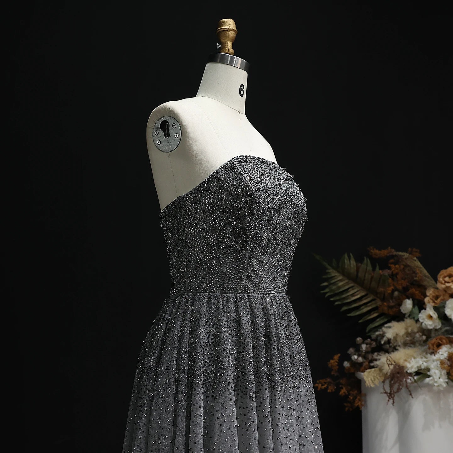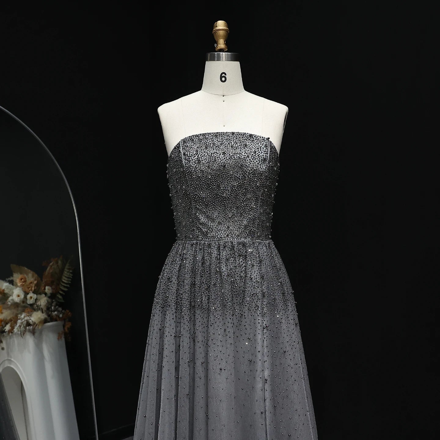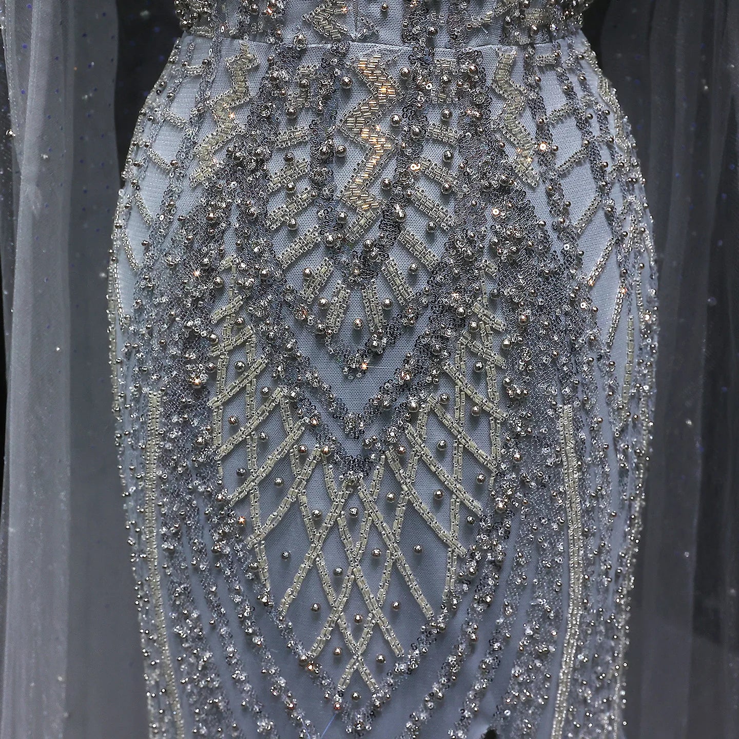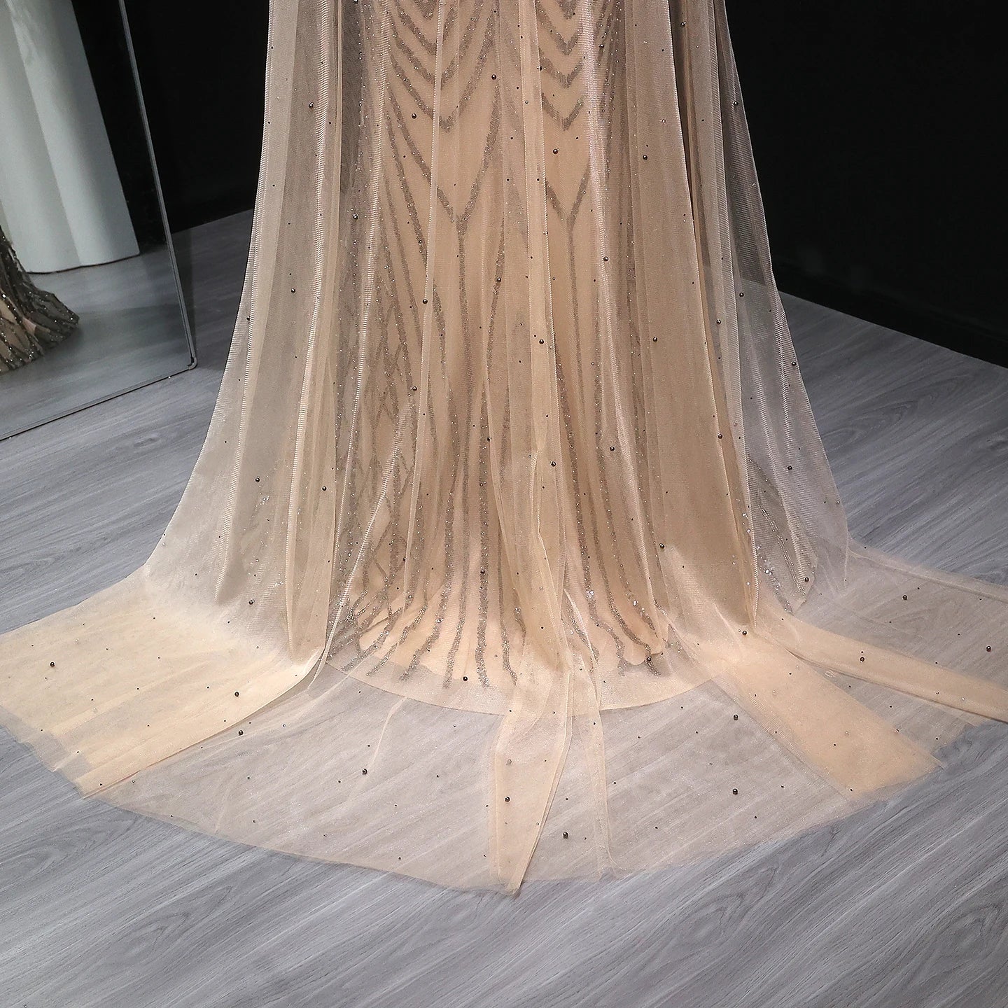 Sharon Said Glamorous Beaded Brown Gray Memaid Evening Gown with Sheer Cape Side Slit Women Wedding Party Dress SS055 Customized